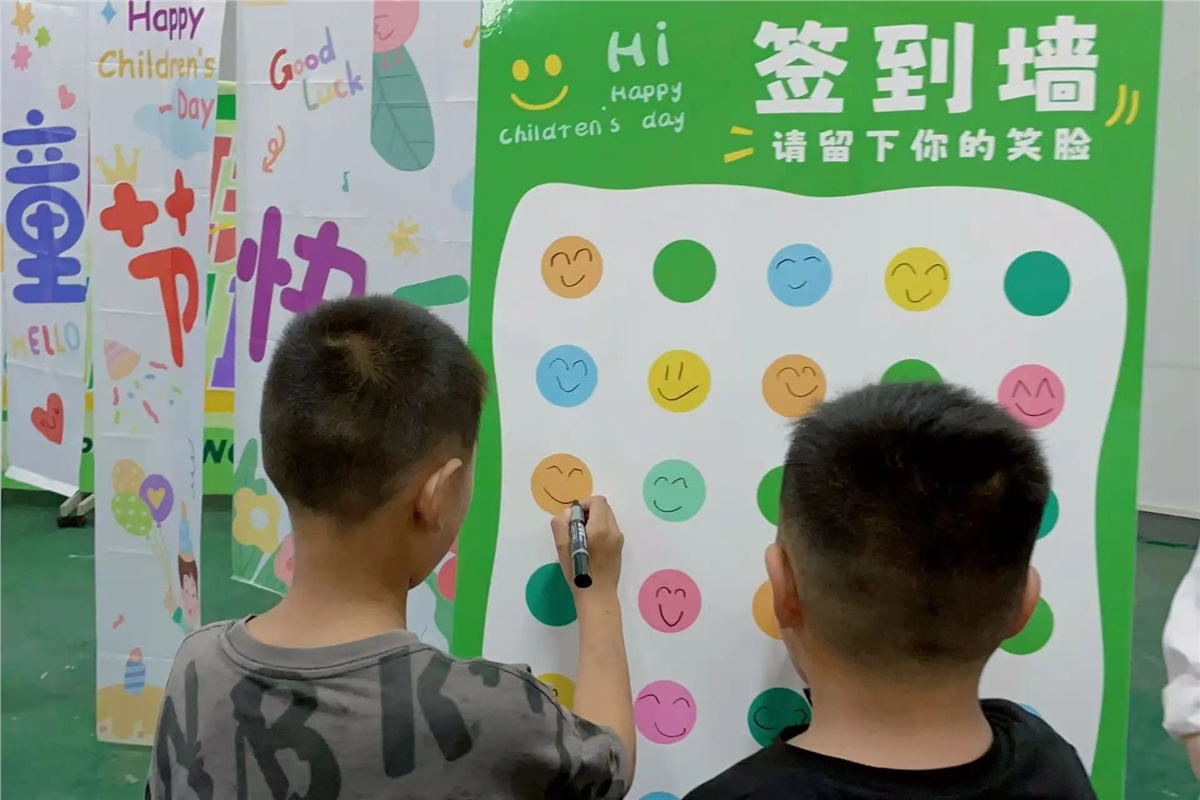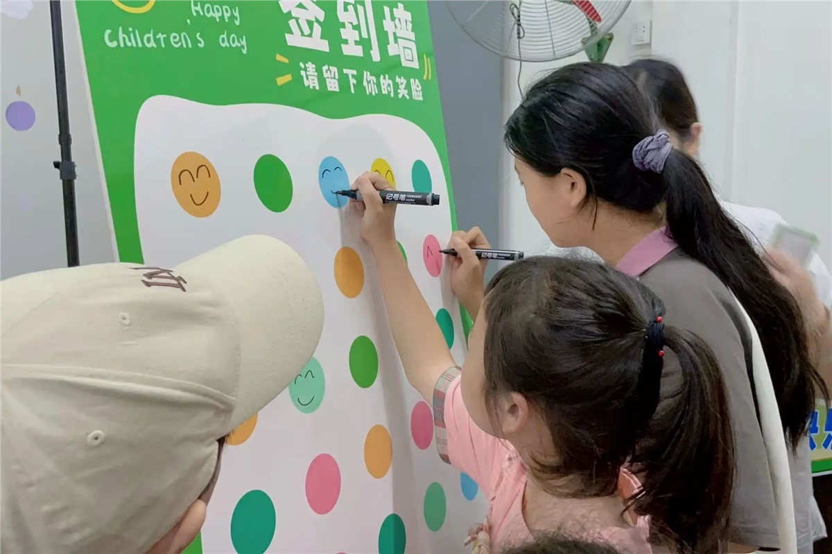 ▲別開生面的“笑臉簽到”環節讓大小朋友們喜笑顏開