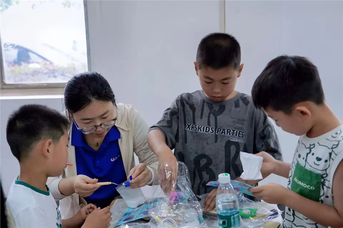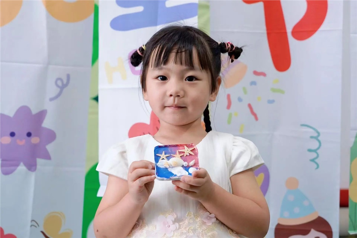 ▲在父母的陪伴與引導下,萌娃們用巧手將色彩斑斕的材料變為一枚枚獨一無二的創意冰箱貼。