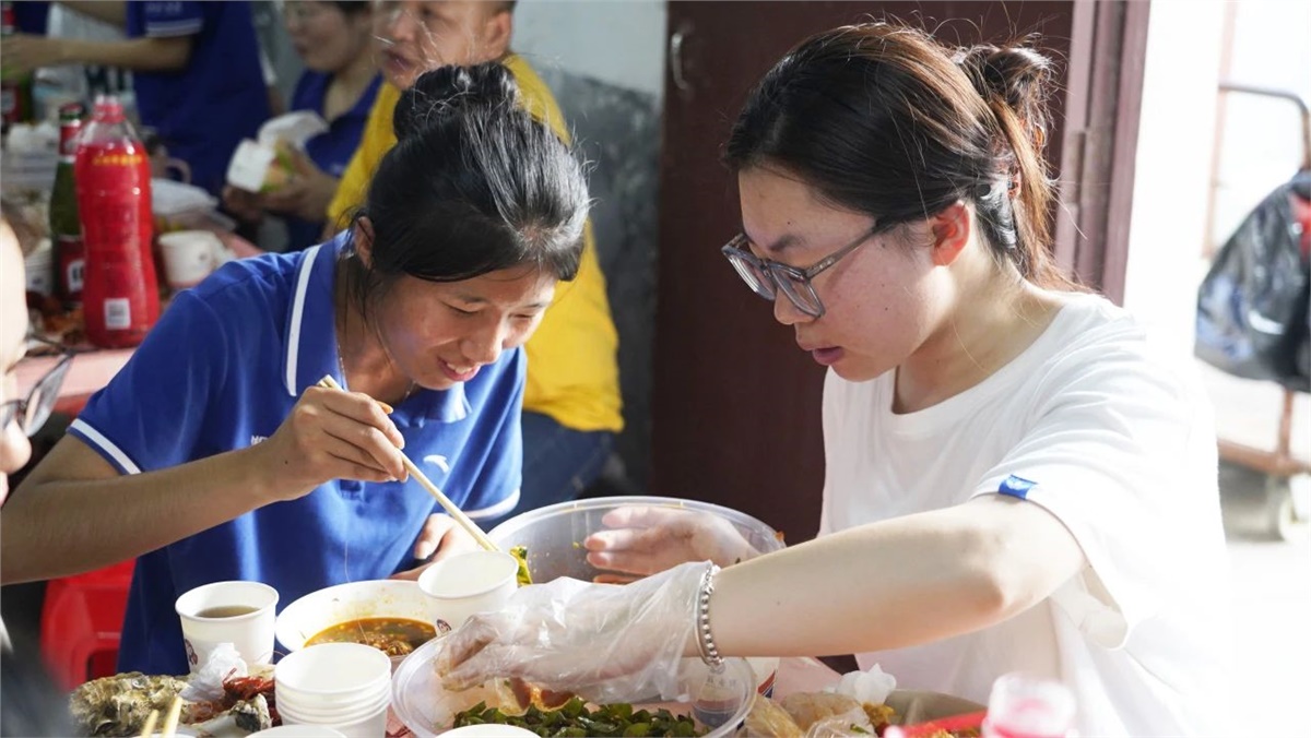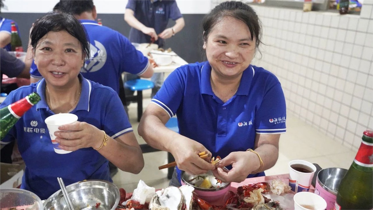 踏入餐廳,映入眼簾的是一盤盤美味的龍蝦、生蠔和飄香四溢的熱鹵、精致可口的小菜,還有清熱解渴的西瓜、冰鎮涼茶等。大家歡聚員工餐廳,圍桌而坐,歡聲笑語不斷,鮮嫩可口的海鮮在味蕾上綻放,一次次舉杯飽含喜樂、一聲聲歡笑傳遞幸福。