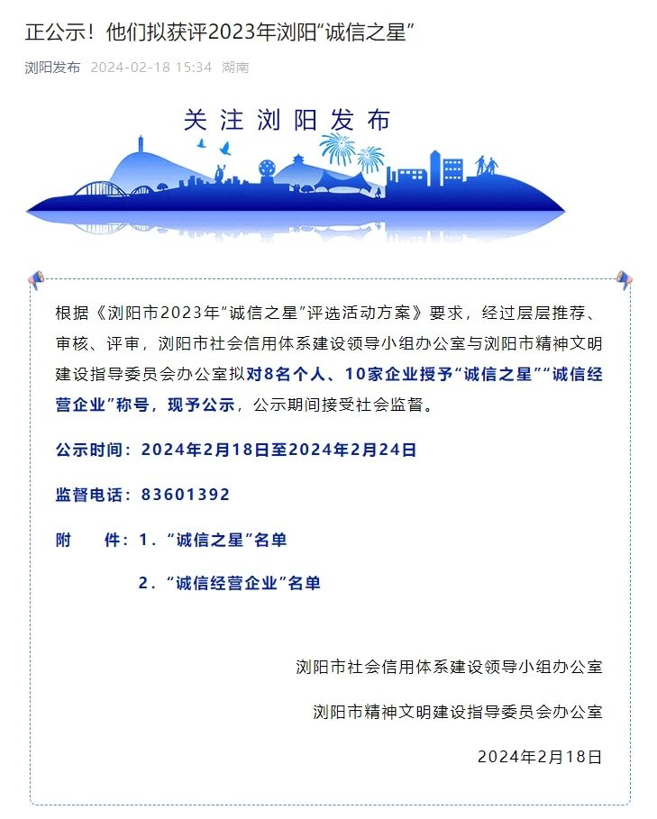 近日,瀏陽市社會信用體系建設(shè)與瀏陽市精神文明建設(shè)指導(dǎo)委員會辦公室聯(lián)合開展的瀏陽市2023年“誠信之星”評選進(jìn)入公示期,湖南湘聯(lián)電纜有限公司成功入選,成為2023年“誠信之星”。